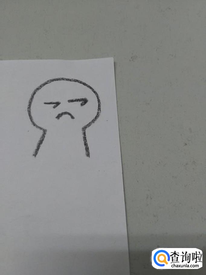 先用黑笔在纸上画一个半圆,表示头,在头的下面,画两条竖线,表示小人的身体,将小人的眼睛画成长方形,里面画两个黑点表示眼珠,嘴画一条短短的横线,在小人的头上,点六个点,这个表情,表示小人有点蒙,特别可爱。