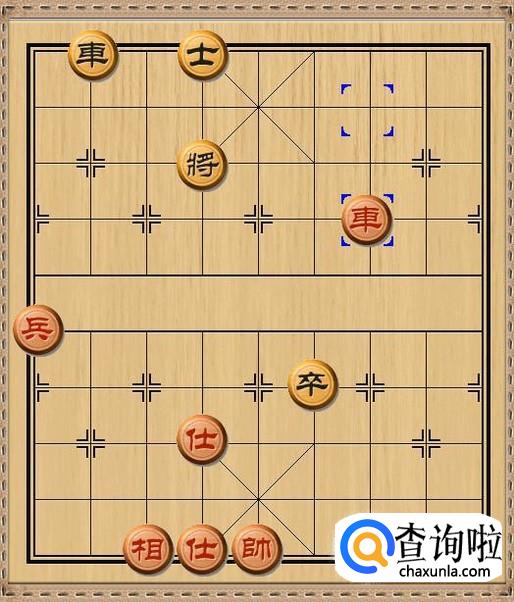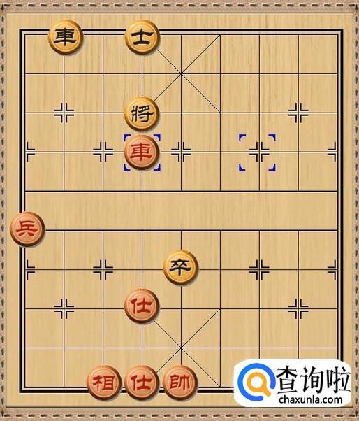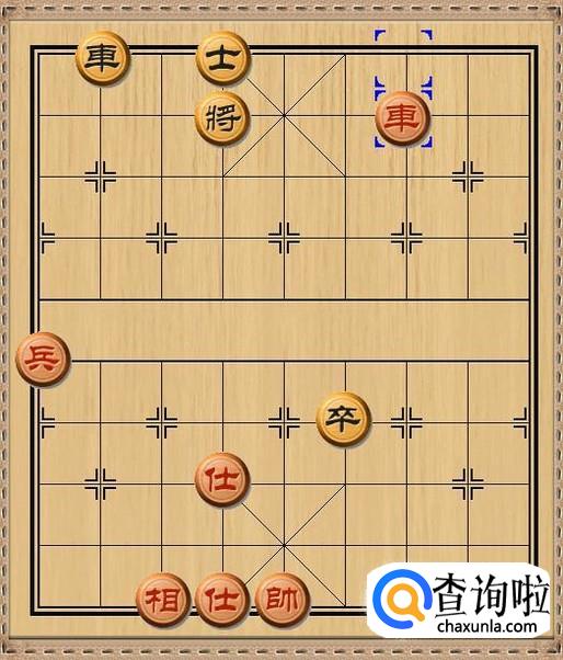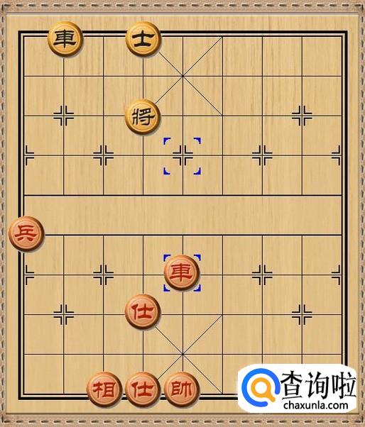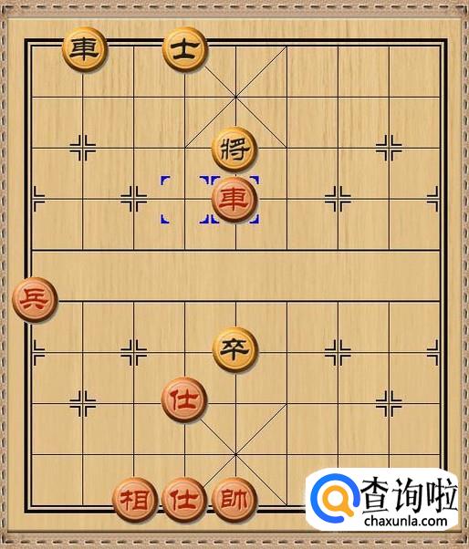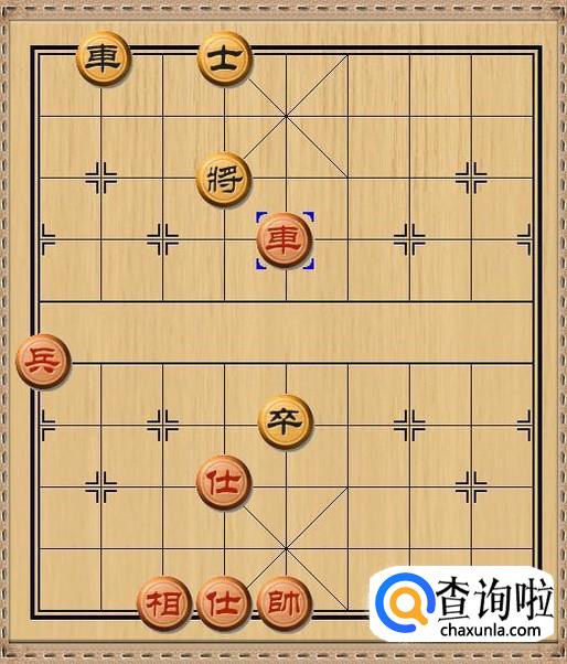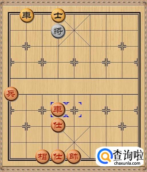 红方先行,红方和黑方的进攻兵力各自剩下一车和一兵,红方车三退一,红方车退后一步将军。如图所示。