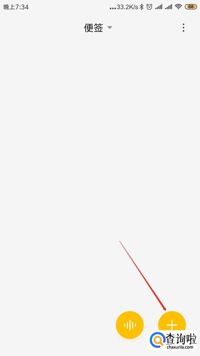 进入到便签的页面,想要添加一条便签只需要点击右下角加号: