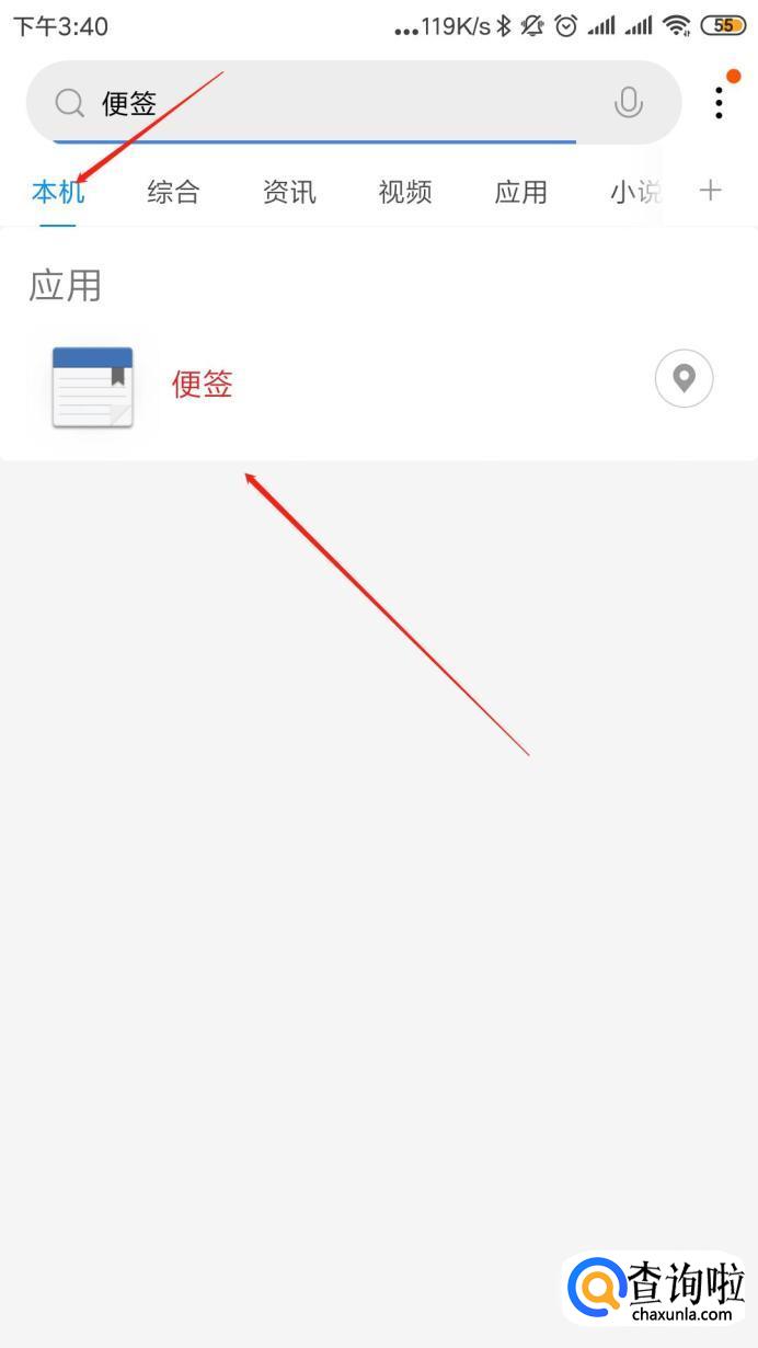 输入【便签】,然后选择【本机】,既可以出现【便签】选项,点击一下就能打开了: