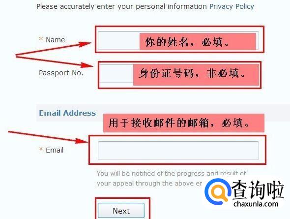 2)“Passport No.”处填写你的护照或身份证号码(非必填);