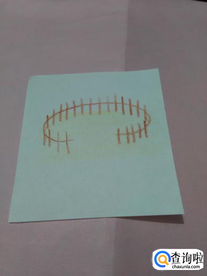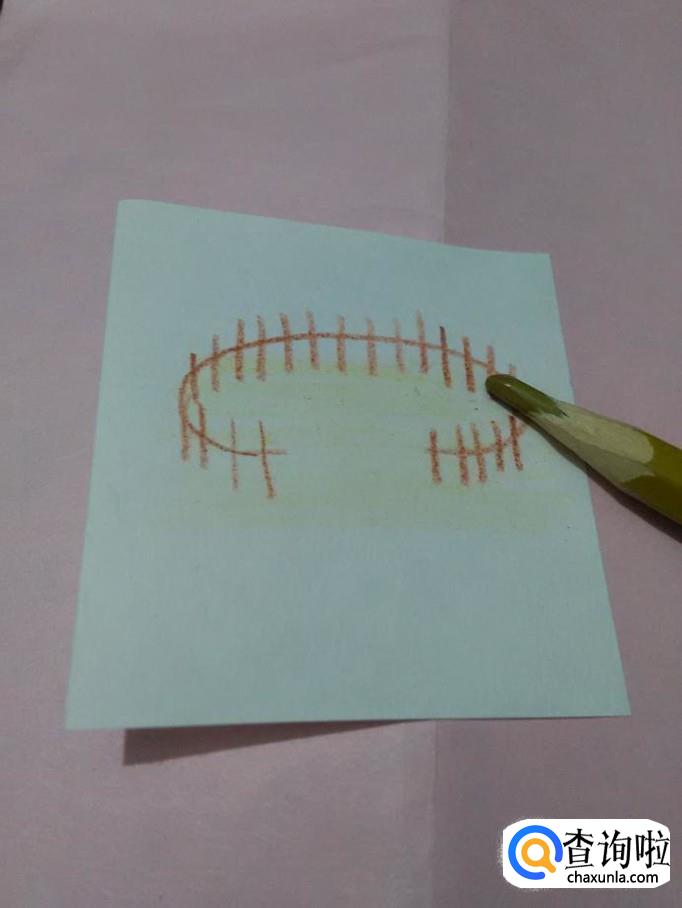 先用棕色笔在纸上画一个开口的椭圆形,表示栅栏的横杆。