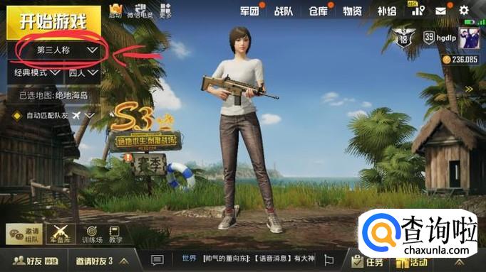 进入游戏之后会看到主界面,“开始游戏”下面有一个“第三人称”,点击“第三人称”