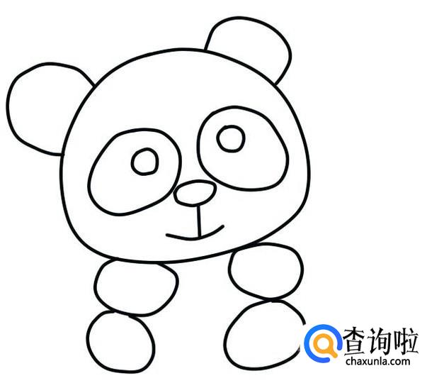 从两条后腿之间,连一条弧线,表示熊猫身体的轮廓。
