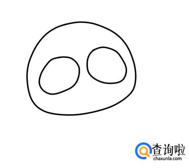 在头部上面再画两个斜着的椭圆形,表示眼睛。