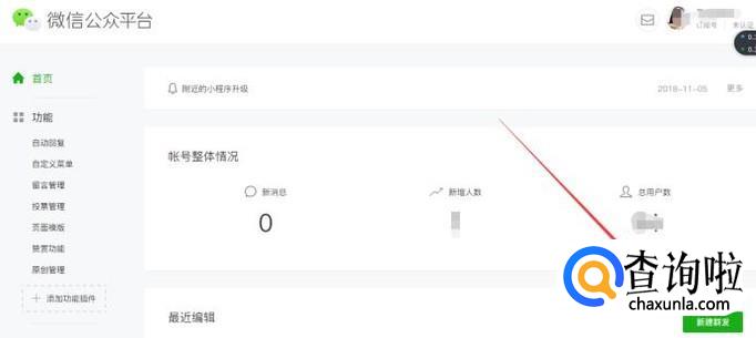 登录成功后,进入微信公众号首页,点击右侧方的“群发”