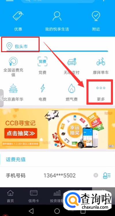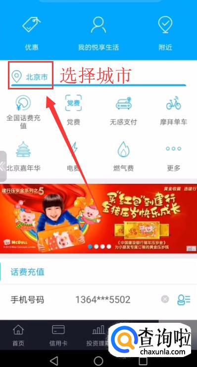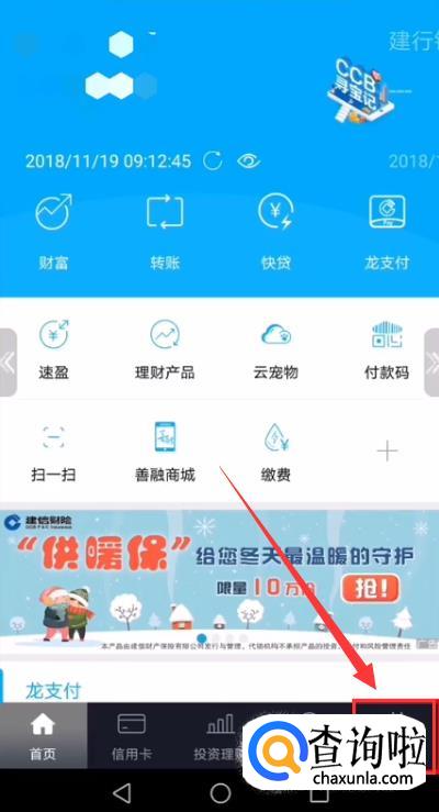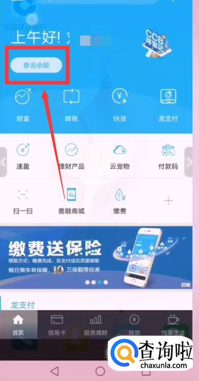 进入【中国建设银行】之后,我们点击【查询余额】。