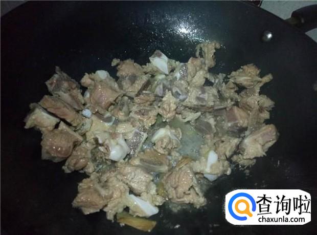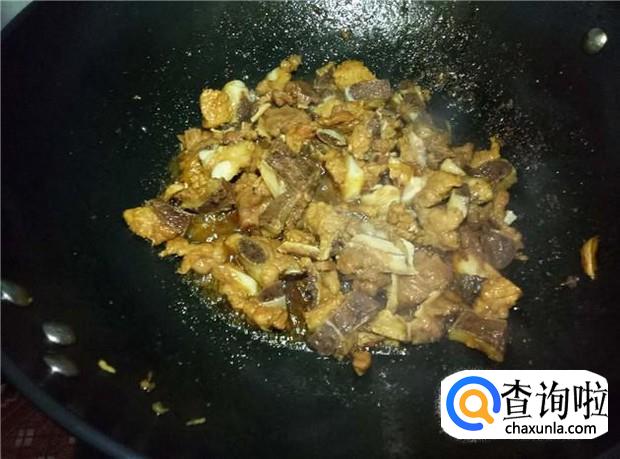 热锅下油,放入姜片,然后把排骨放进去翻炒均匀。