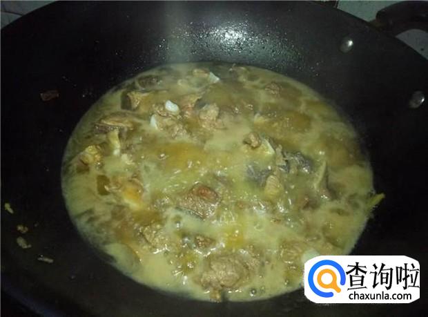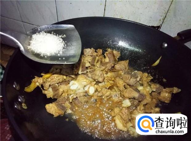 翻炒均匀后,加入适量的开水,开水的分量要盖过排骨。中火慢慢煮。