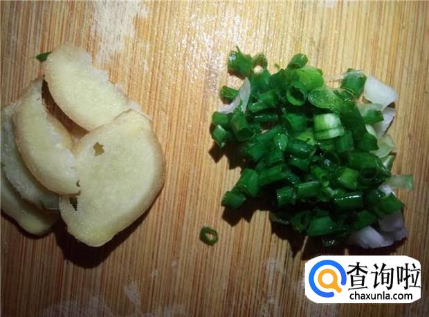 姜切片,香葱切碎,备用;