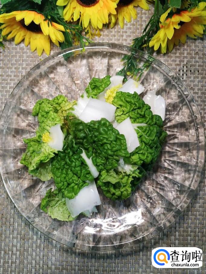 准备适量乌塌菜,用手掰开,然后切成小片儿,洗净后,沥干水份备用。