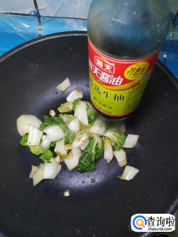 馒头一个,乌塌菜适量,鸡蛋适量,盐适量,鸡精适量,五香粉适量,生抽适量。