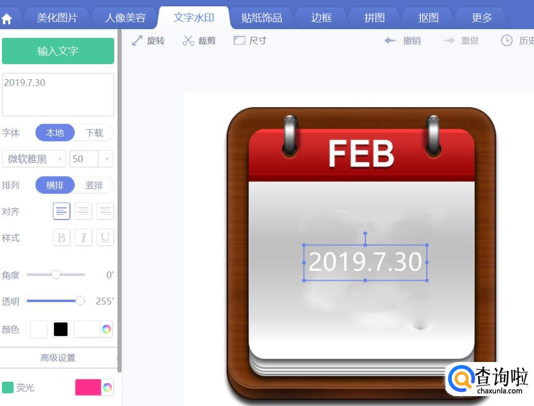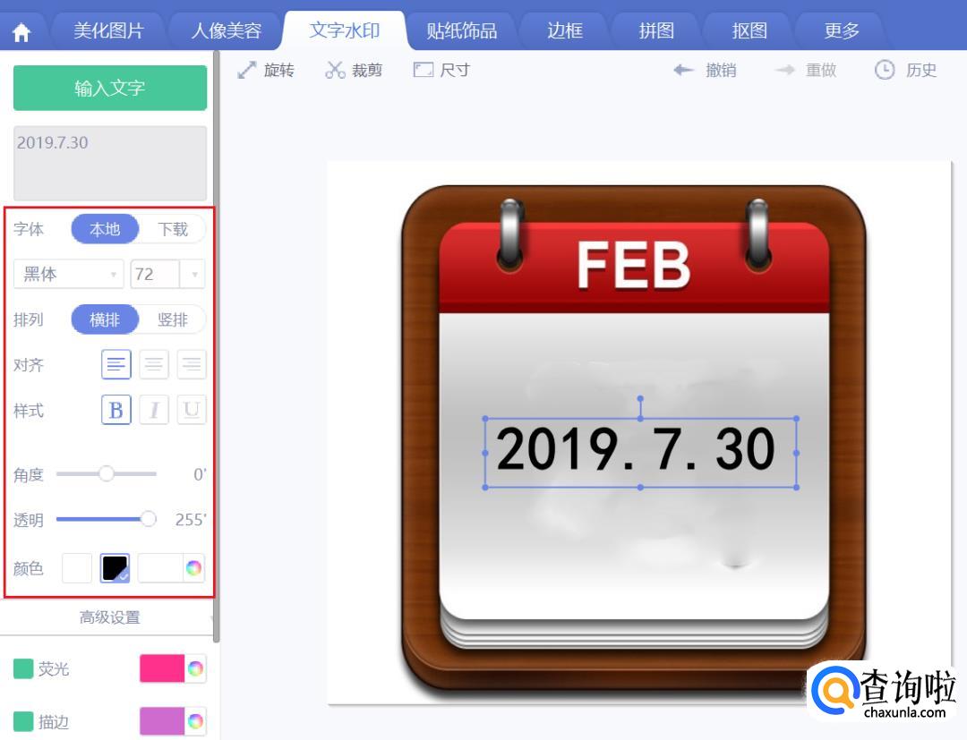 接着,我们点击文字水印,可以看到有输入文字功能,点击输入文字会显示文本框。