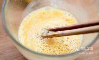 鸡蛋打到碗里搅拌均匀,不用打成泡。