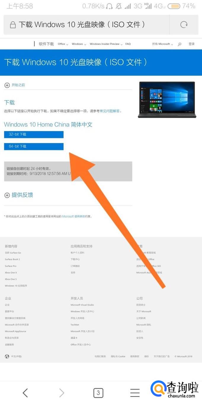 最后选择下载的Win10系统位数,这个根据电脑决定,如果电脑是32位就点击下载32-bit,如果电脑是64位,就点击下载64-bit。