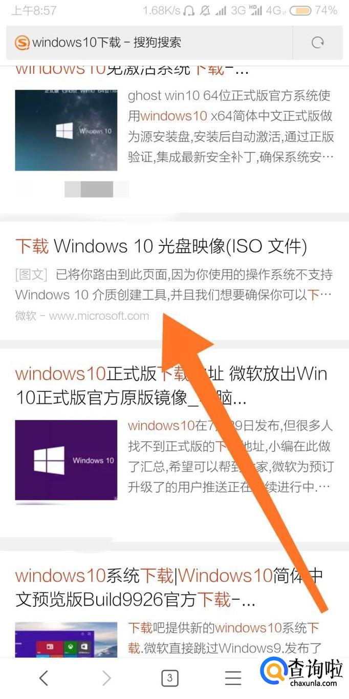 然后找到“下载Windows10光盘映像(ISO文件)”搜索结果,点击进入。
