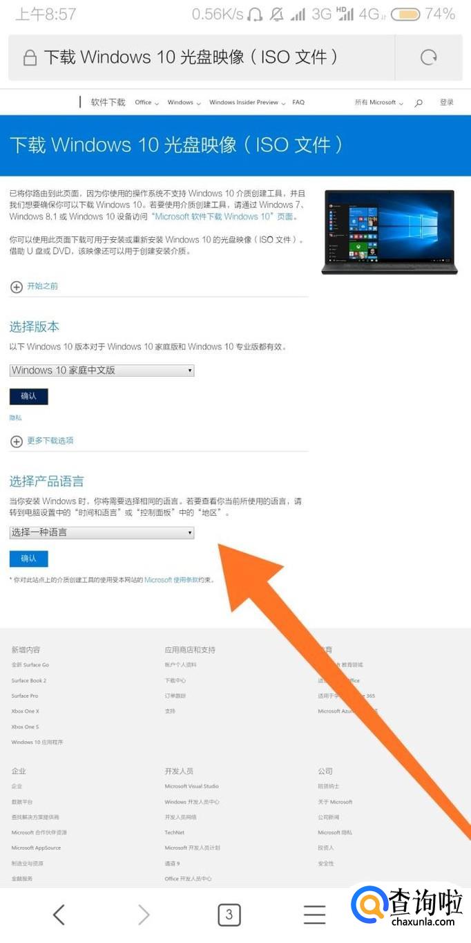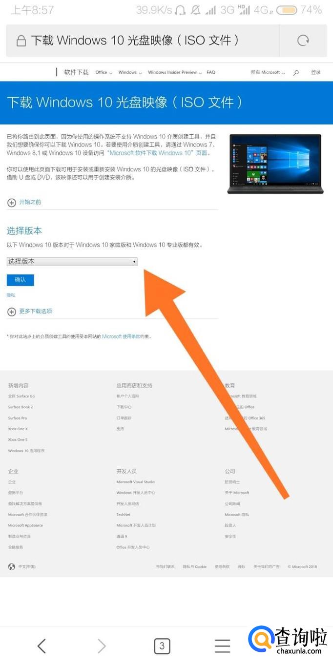 进入Windows10系统下载页面后,首先点击“选择版本”,选择需要下载的Win10版本,在这里小编推荐下载家庭中文版。