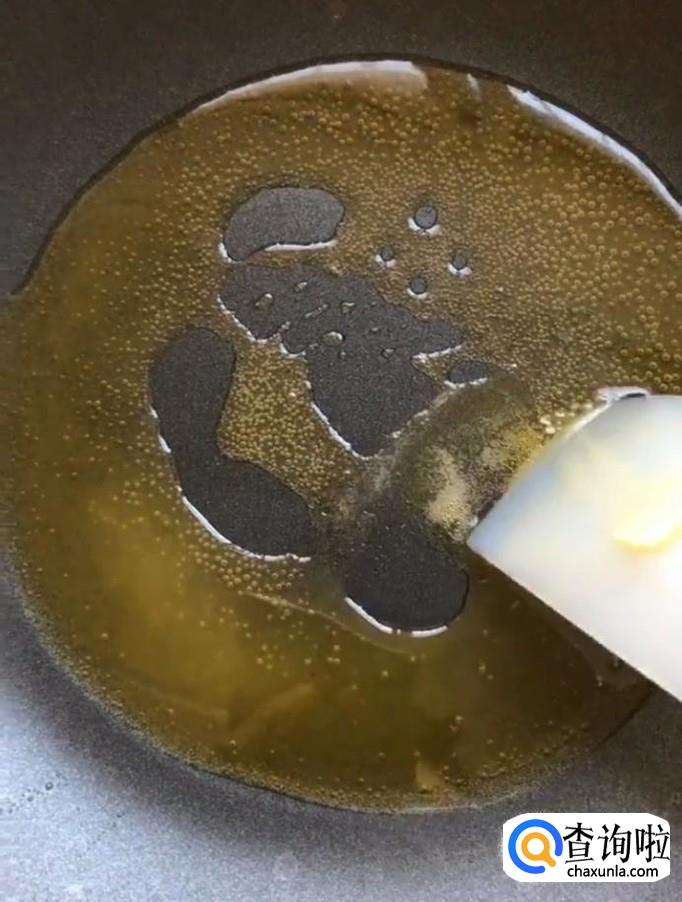 首先我们把50g黄油放入锅中,开小火,炒至完全融化