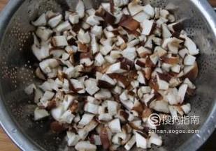 准备一些干香菇,用水充分泡软后也切成丁备用。