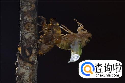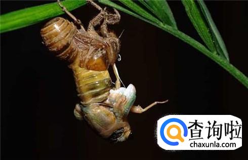 后背鼓起来之后的知了,会将后背的皮撑破,然后裂缝一点点大起来,整个后背露出来之后,知了的头部会接着出来,然后知了会将整个身体往后倾斜,努力将尾部也挣脱出来。