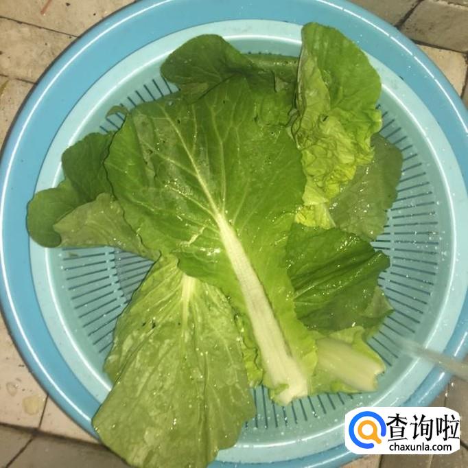 然后将白菜用洗米水泡五分钟,接着用清水洗净沥干。