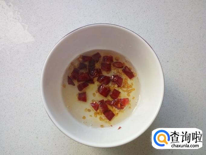 蒜切成末,红干椒切成小段,备用。