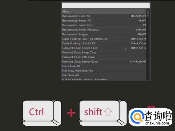 然后按ctrl+shift+p组合键,打开命令模式对话框,如下图所示