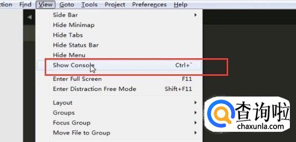 安装主题之前需要先安装package control,选择View菜单下面的Show Console选项,如下图所示