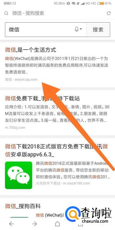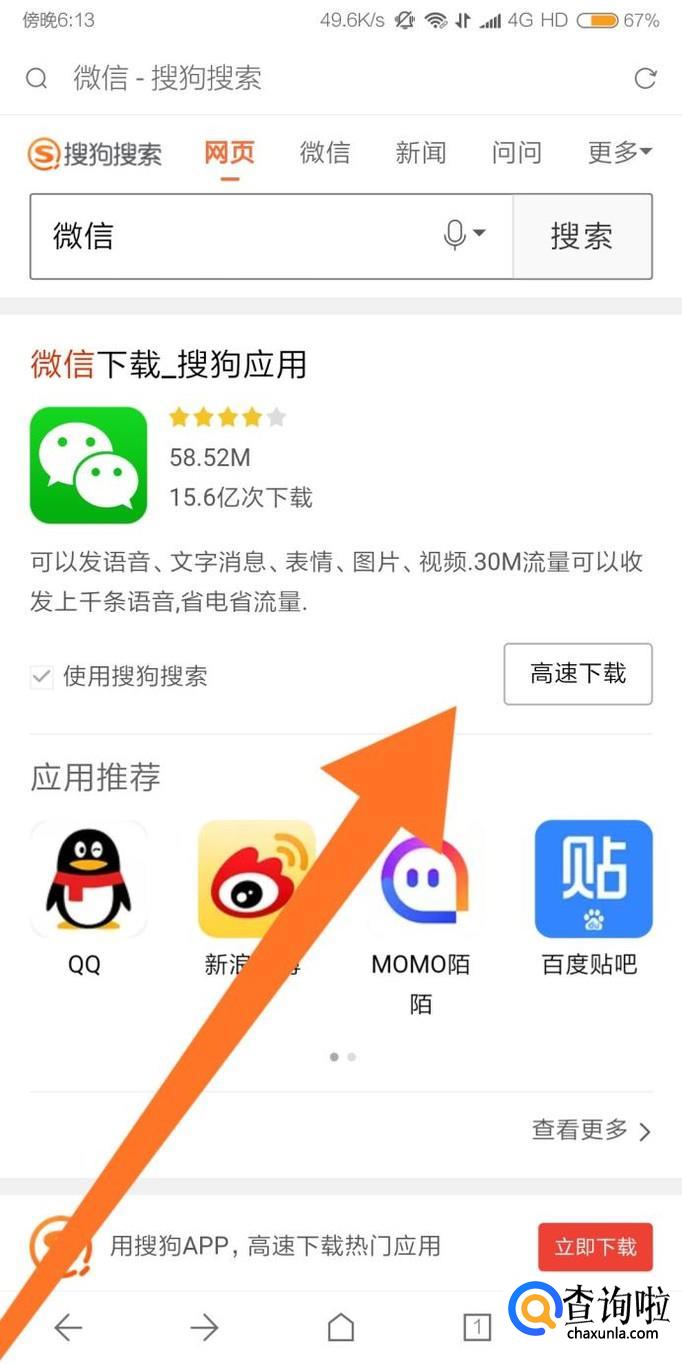 我们可以直接使用搜狗搜索“微信”,点击搜狗应用的“高速下载”即可。