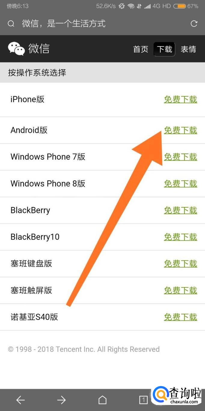 进入下载页面后,根据自己手机的操作系版本来选择需要下载的微信版本,最后点击“免费下载”即可。