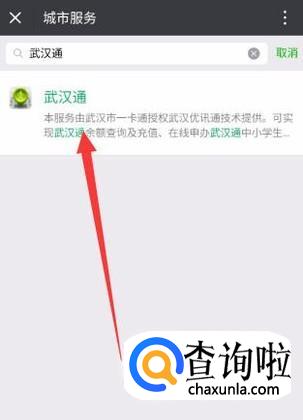 进入之后,搜索“武汉通”,点击并进入,如图所示。