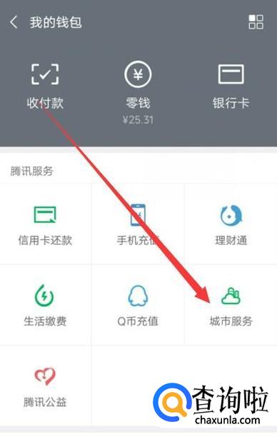 进入之后,点击“城市服务”,进入下一页面,如图所示。