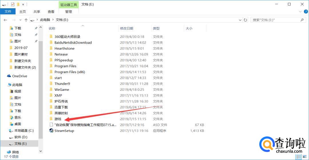 打开你存放游戏文件的文件夹【游戏】,打开文件夹。
