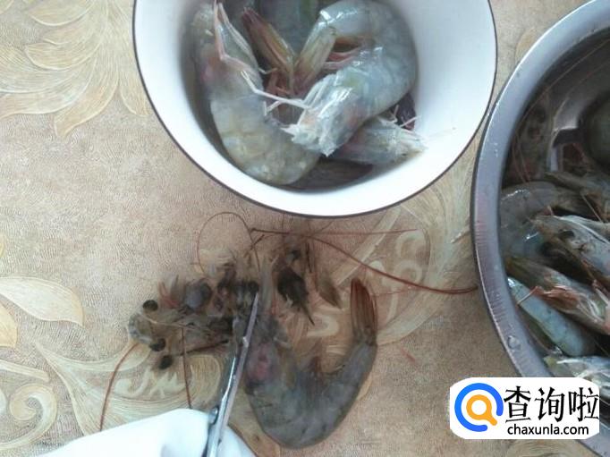 清洗干净之后,找一把小剪刀,将青虾的虾须以及虾头那个位置,特别硬的虾壳剪去,不然就算是经过了油炸,照样会扎嘴巴的。
