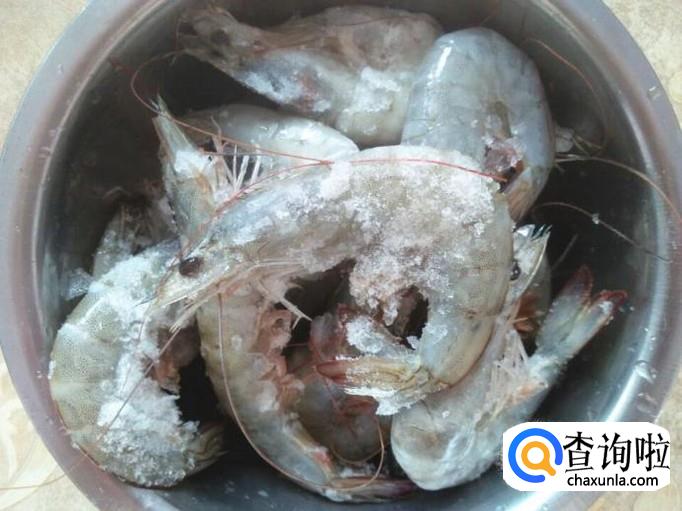 按理说应该切几片生姜放进虾里,只是羊儿家没有生姜了,懒得下楼买,那就不用了。家里有生姜的各位亲,别忘了切几片生姜,然后切几片大蒜瓣,直接放进青虾里,搅拌一下腌制二十分钟。