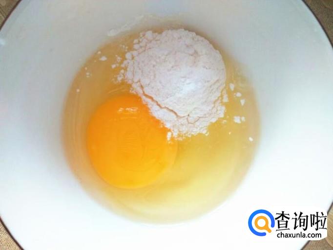 碗里打进去一个鸡蛋,加上一点点淀粉或者面粉,这个都可以的,随你自己的意思,搅拌均匀待用。