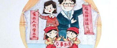 4、上联:和顺门第增百福 下联:合家欢乐纳千祥 横批:欢度春节