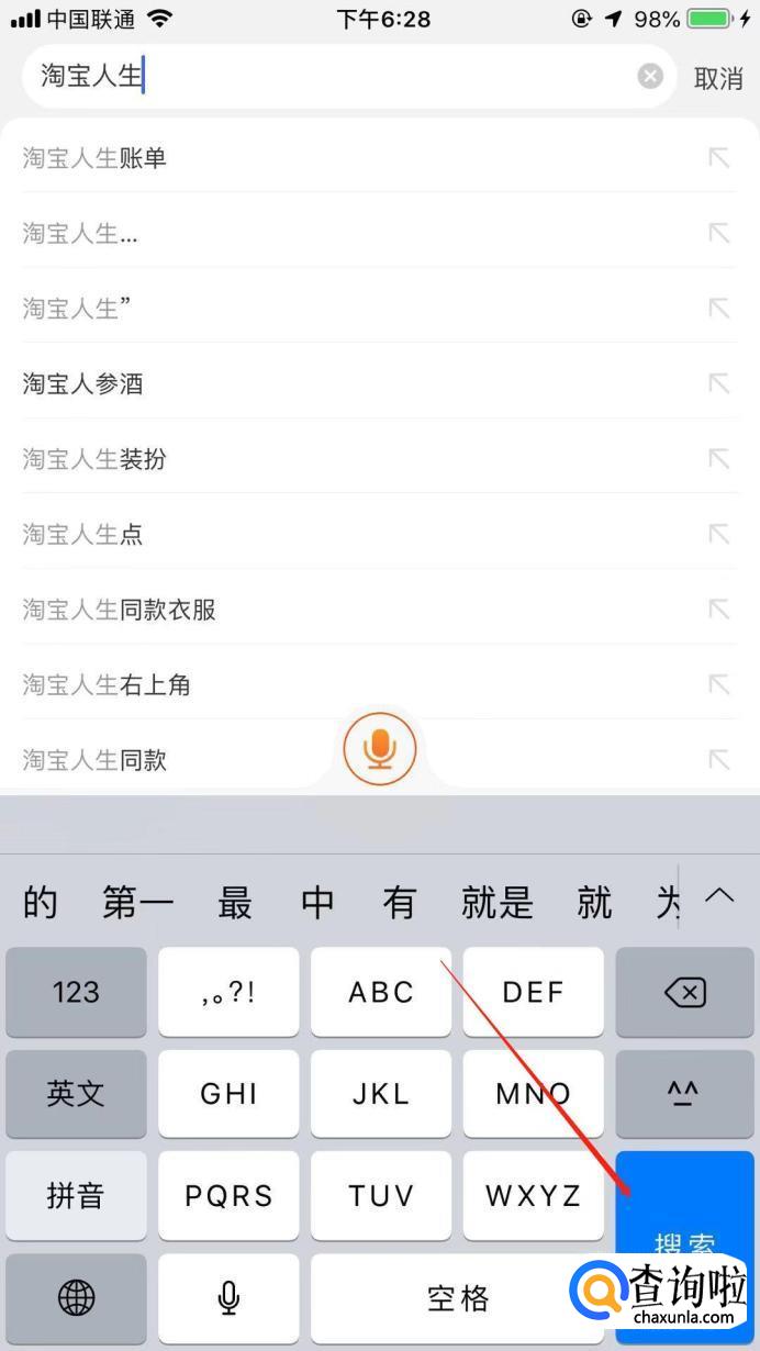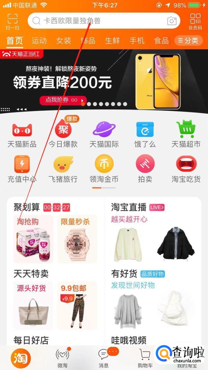 进入主页后,点击上面搜索框,输入“淘宝人生”。