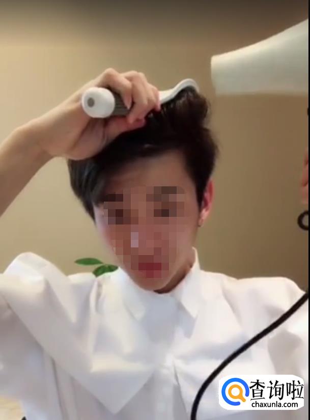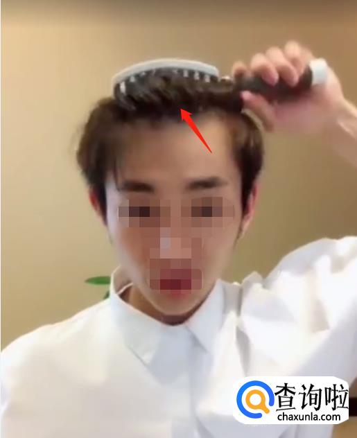 用梳子梳起最多一侧的部分头发,用吹风机最小最热的风吹头发。,