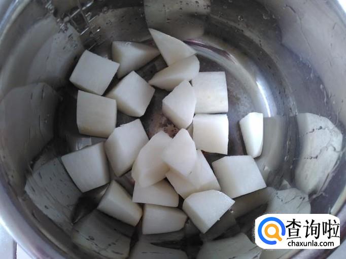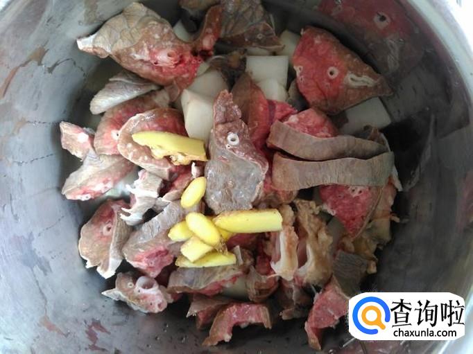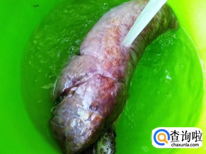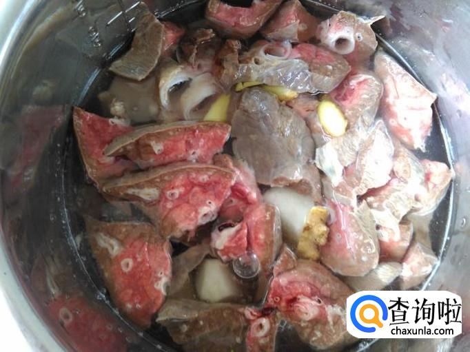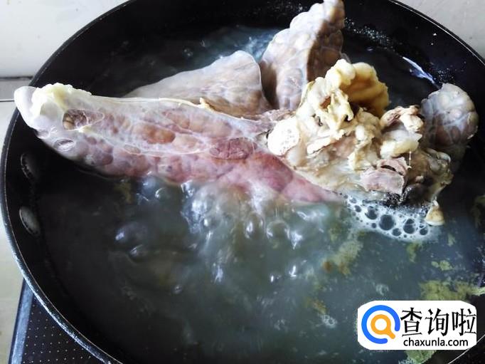 把猪肺洗干净放置锅里加水煮沸后再煮7分钟左右。