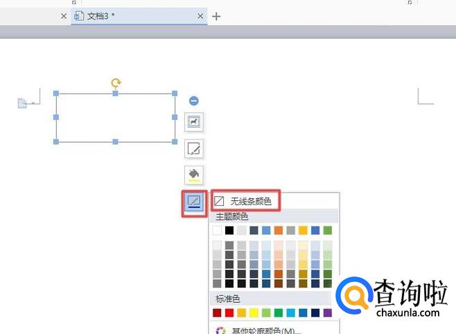 之后我们选中这个文本框,然后我们点击形状轮廓,弹出的界面,我们点击无线条颜色;