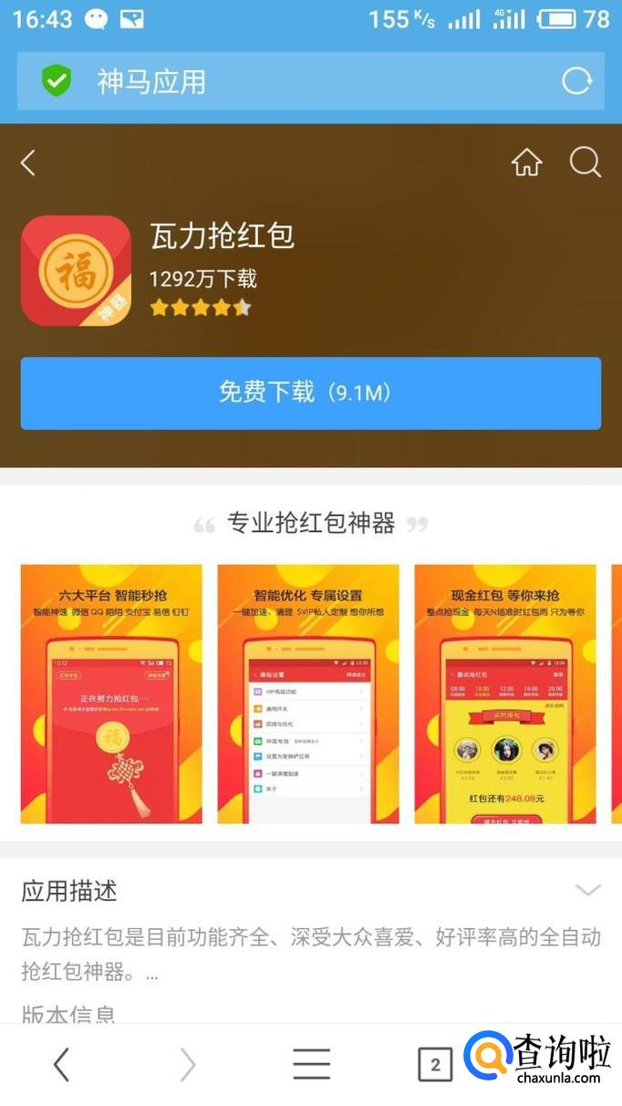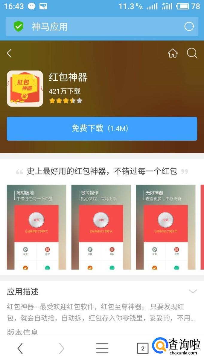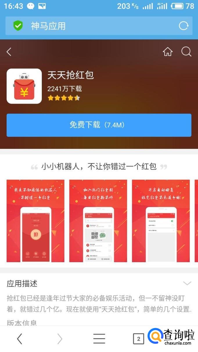 天天抢红包这款APP也是很好用的,主要特点是微信QQ的红包都可以抢,可以通用的。