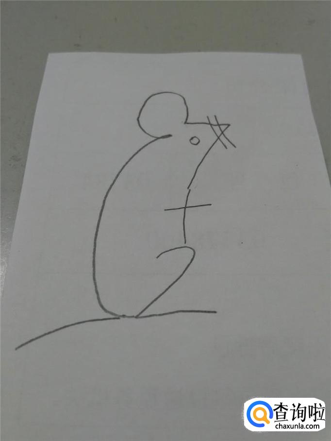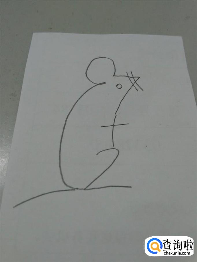 从7的起笔处向下写一个大大的9,圆圈的部分表示老鼠的耳朵,9下面长长的弧线表示老鼠的背和屁股。