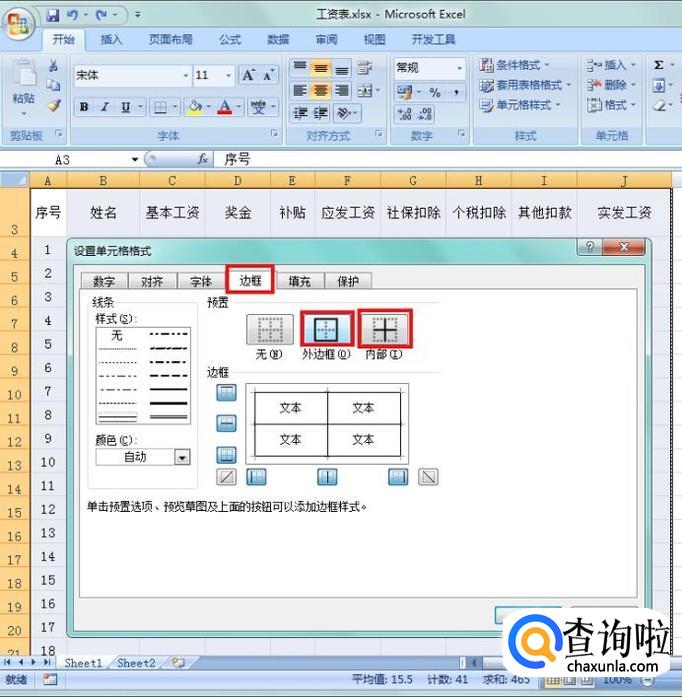 选中3行以下的区域,设置边框,外边框和内部都需要;