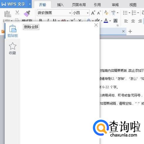 WPS文字中显示剪切板、清空剪切板内容的方法