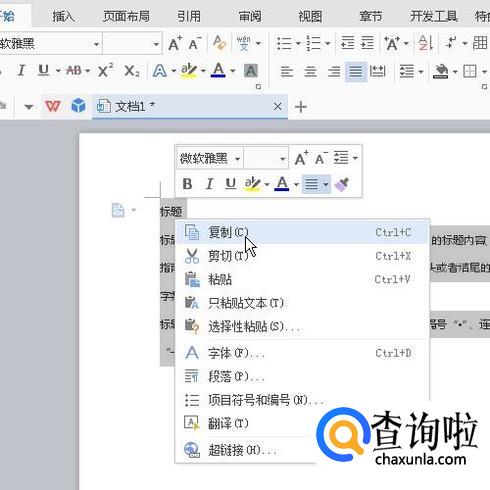 比如,在文档中输入一段文字,然后,执行复制。