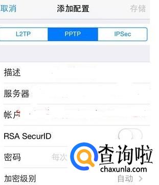 然后就可以填写服务器的账户和密码,加密级别选无,然后保存,如图所示。科学上网的服务器和账户密码需要自行寻找购买。