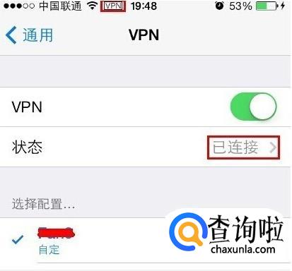 然后返回vpn界面,打开配置连接,如图所示,等待连接完成