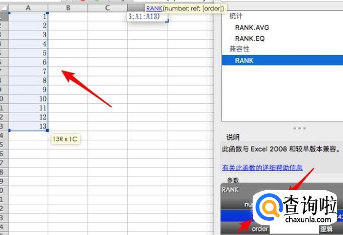 打开了函数窗口,在上面输入rank,就可以搜索到这个函数了。