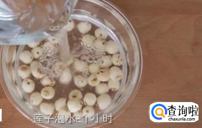 将莲子放入碗中,浸泡2小时。